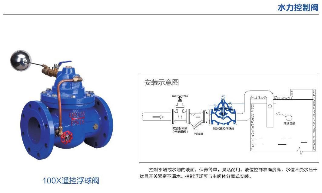 - 控制水塔或水池的液面,保養(yǎng)簡(jiǎn)單,靈活耐用,液位控制準(zhǔn)確度高,水位不受水壓干擾且開關(guān)緊密不漏水。