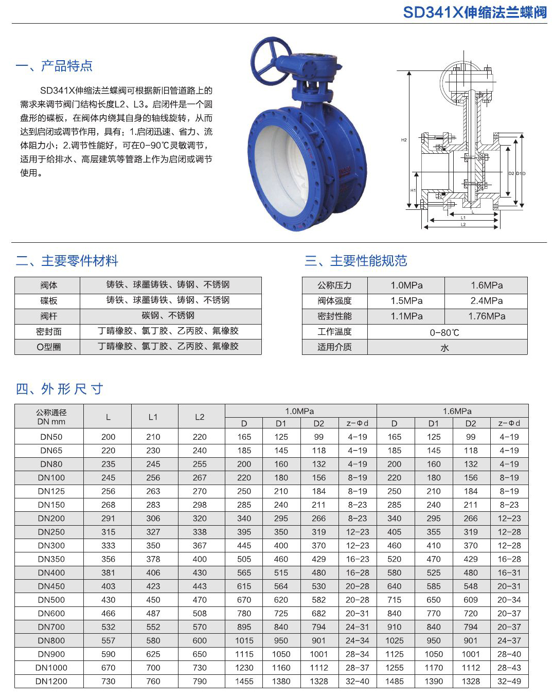 - SD341X伸縮法蘭蝶閥可根據(jù)新舊管道路上的需求來(lái)調(diào)節(jié)閥門結(jié)構(gòu)長(zhǎng)度L2、L3。