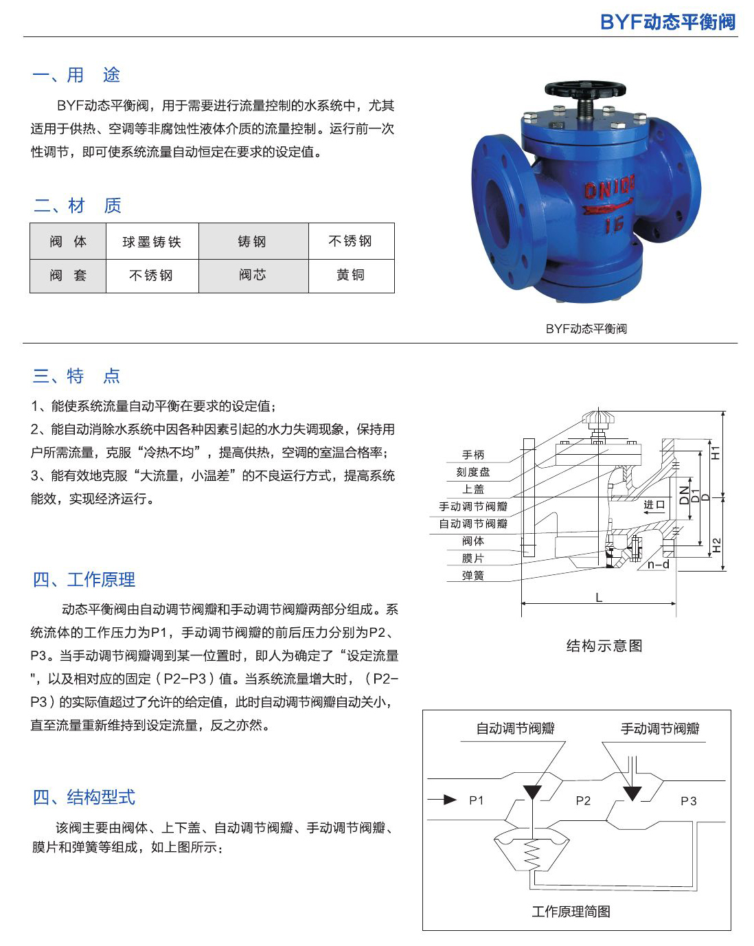 - BYF動(dòng)態(tài)平衡閥,用于需要進(jìn)行流量控制的水系統(tǒng)中,尤其適用于供熱、空調(diào)等非腐蝕性液體介質(zhì)的流量控制。