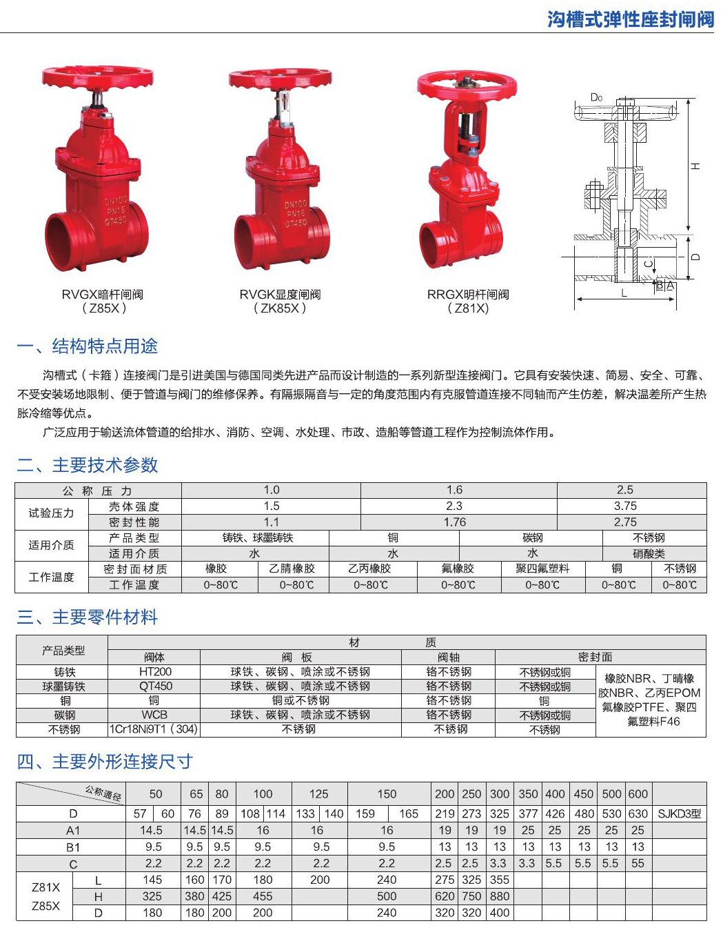 - 溝槽式(卡箍)連接閥門是引進(jìn)美國與德國同類先進(jìn)產(chǎn)品而設(shè)計制造的一系列新型連接閥門。它具有安裝快速、簡易、安全、可靠、不受安裝場地限制、便于管道與閥門的維修保養(yǎng)。有隔振隔音與一定的角度范圍內(nèi)有克服管道連接不同軸而產(chǎn)生仿差,解決溫差所產(chǎn)生熱賬冷縮等優(yōu)點。