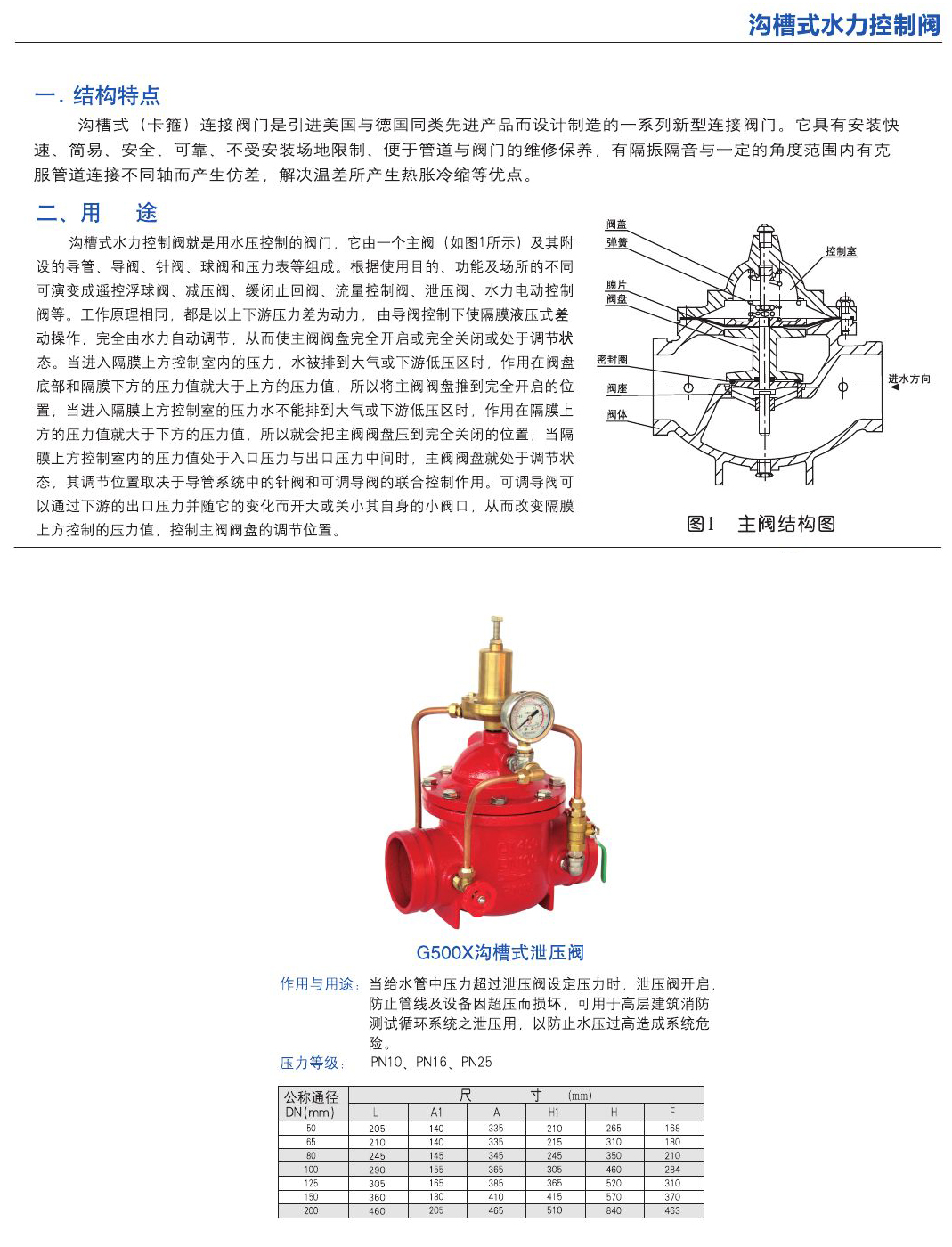 - 當(dāng)給水管中壓力超過(guò)泄壓閥設(shè)定壓力時(shí),泄露壓閥開啟。防止管線及設(shè)備因超壓而損壞,可用于高層建筑消防測(cè)試循環(huán)系統(tǒng)之泄壓用,以防止水壓過(guò)高造成系統(tǒng)危險(xiǎn)。