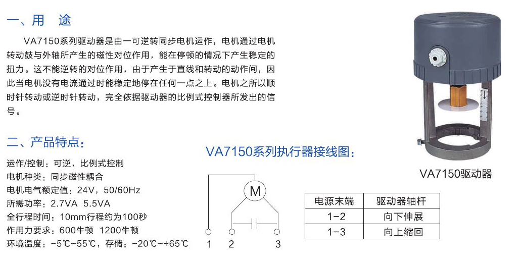 - VA7150系列驅(qū)動器是由一可逆轉(zhuǎn)同步電機(jī)運作,電機(jī)通過電機(jī)轉(zhuǎn)動鼓與外軸所產(chǎn)生的磁性對位作用,能在停頓的情況下產(chǎn)生穩(wěn)定的扭力。